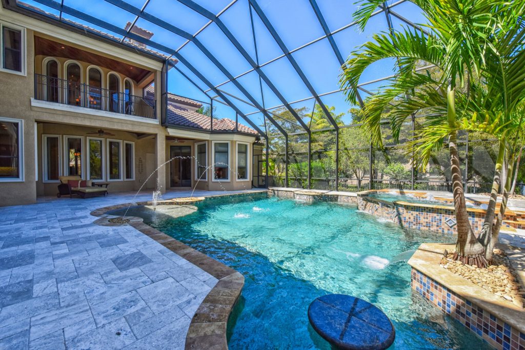 Impeccable design detail also flows to the multitude of outdoor living spaces to provide the best in resort style living with unique pecky cypress ceilings, travertine pavers, a dual-sided fireplace, multiple balconies, a fully equipped outdoor kitchen and over sized pool and spa.
