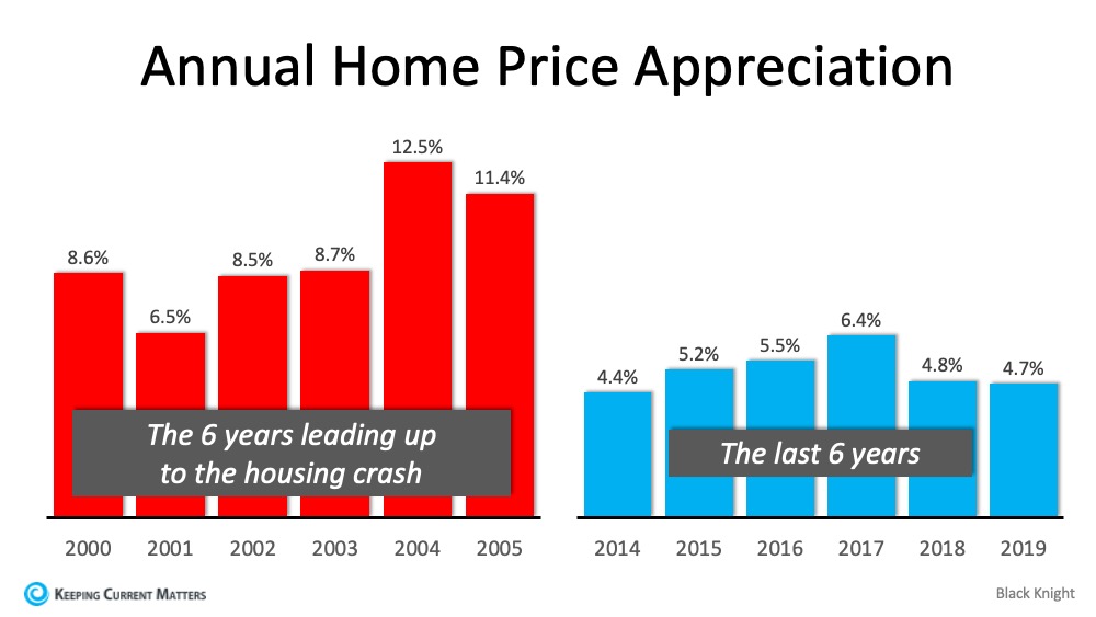 There’s a stark difference between these two periods of time. Normal appreciation is 3.6%, so while current appreciation is higher than the historic norm, it’s certainly not accelerating beyond control as it did in the early 2000s.