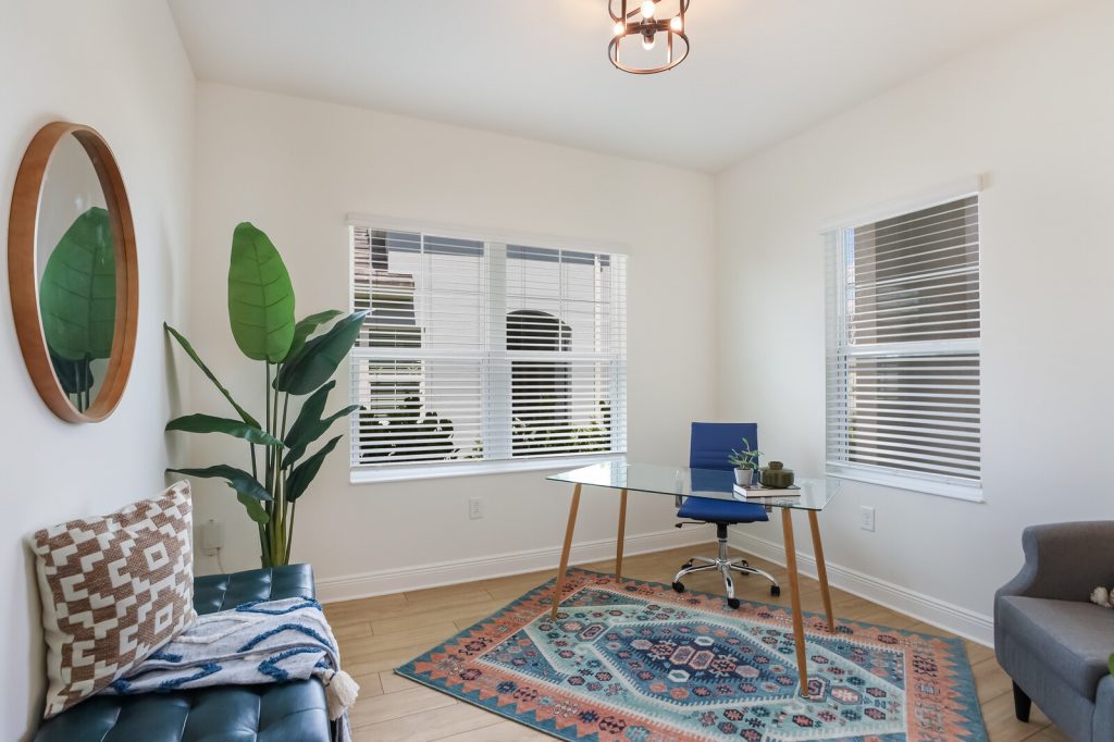 The split bedroom plan is perfect for visiting guests who will enjoy their own walk-in closet, and with a separate study/den nearby, it’s perfect to double as a third bedroom, office or even a gym.